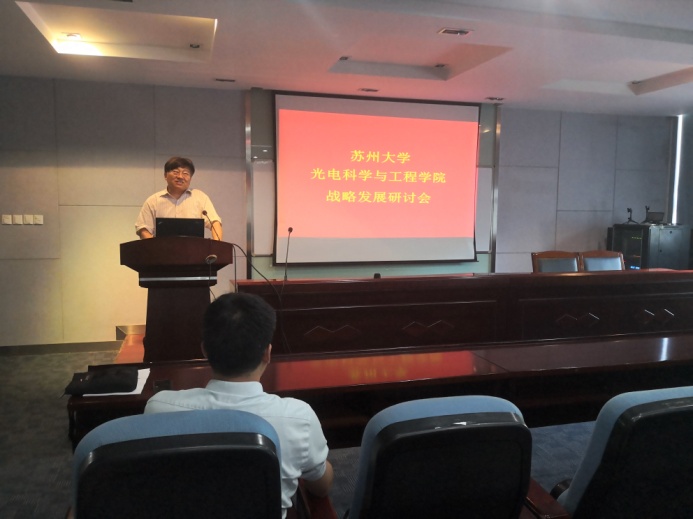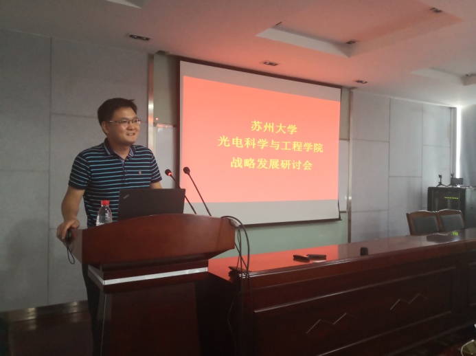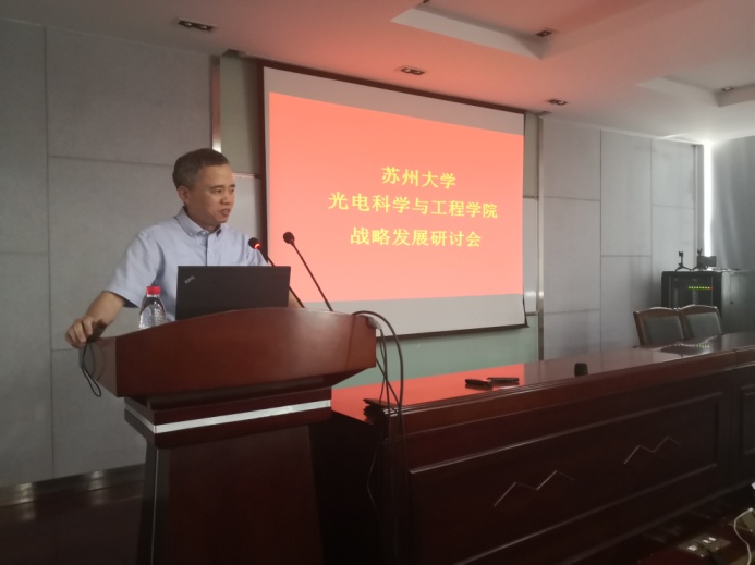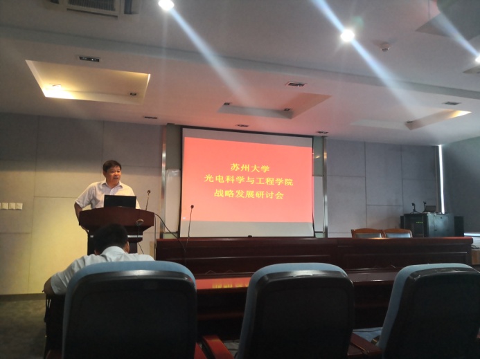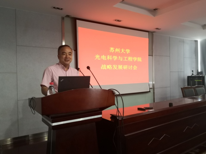 在听取光电学院战略发展规划报告后,张晓宏副校长作指导讲话,对研讨会的召开及学院学科今后发展提出四点建议和要求:一是明确学科发展与重点研究方向,形成光电学院学科特色和亮点,为打造一流学院和学科而努力;二是发挥现有学科优势与特点,完善人员机制与团队建设,为学科发展做出贡献;三是加强人员的内部培养与外部引进,建设高水平师资队伍;四是加强基础研究工作,注重科学研究与人才培养,补齐学院现存的一些短板。张校长最后预祝此次战略发展研讨会圆满成功。