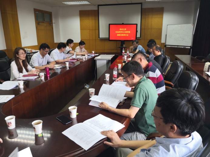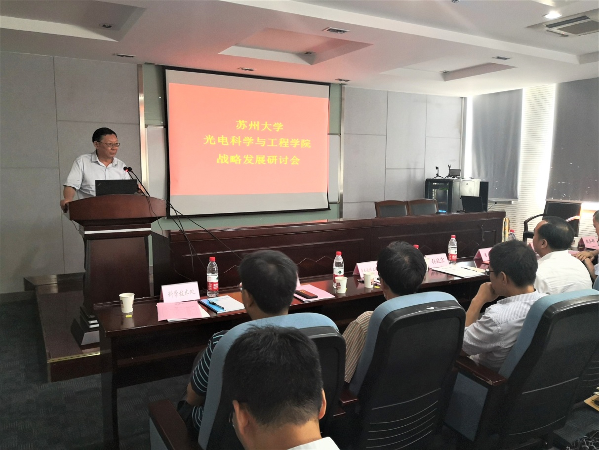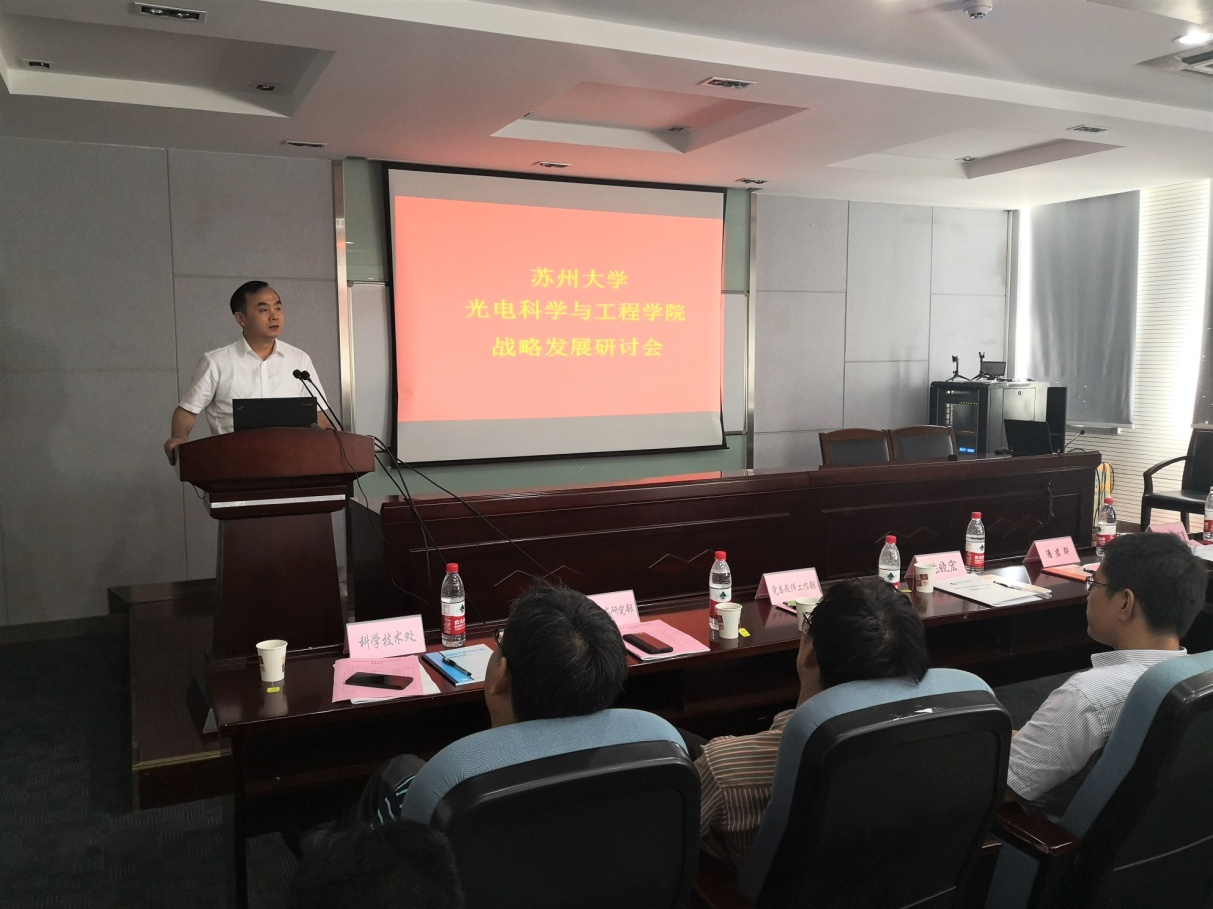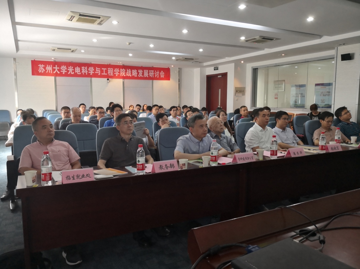 为深入学习习近平新时代中国特色社会主义思想,贯彻落实全国全省教育大会精神,进一步解放思想、凝聚力量,科学谋划学院发展战略,建构新时代新工科人才培养体系,引领学院整体化可持续发展,8月26日,光电科学与工程学院首届战略发展研讨会在天赐庄校区物理科技楼举行。苏州大学党委常委、副校长张晓宏教授、中国工程院院士潘君骅教授及学校党委教师工作部何峰部长、学校学科建设办公室主任沈明荣教授、学校教务部部长周毅教授、学校科学技术研究部部长郁秋亚教授、科学技术处刘开强副处长、学校招生就业处查佐明处长等职能部门领导应邀出席了会议。学院党政班子全体成员、院学术分委员会委员、学位评定分委员会委员、教学委员会委员、教代会代表、分工会委员、校院教学督导、全体行政人员以及退休教师代表与学生代表共计50多人参加会议。