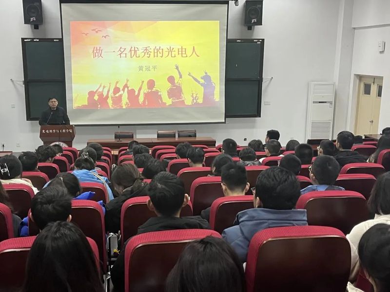 2月22日,光电科学与工程学院党委副书记、副院长黄冠平以“做一名优秀的光电人”为题,为本科生进行生涯规划教育。黄冠平书记表示,希望同学们专注成长而不是成功,不管你获得了怎样的成功,你依然需要成长,成功只是通往终点过程中的一个里程碑而已,那之后还有很长的路(名字叫做成长)要走。大学四年希望同学们能够形成“积极、勇气、自省、自信、胸怀、同理心”的个人价值观,拥有“努力学习、有效执行、合作沟通、人际交流、发现兴趣、追寻理想”的态度和行为,时时自律,最终实现个人价值,不负宝贵青春。