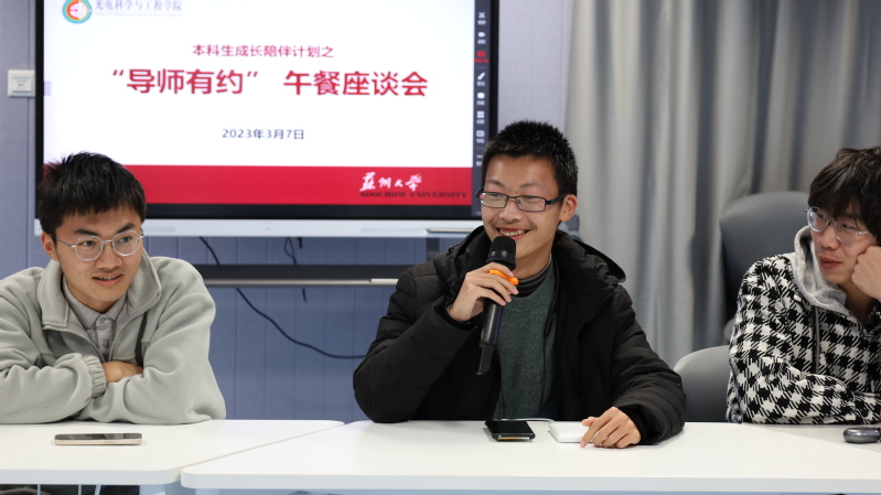 3月7日至3月10日,光电科学与工程学院本科生成长陪伴计划导师李孝峰、龚呈卉等老师,分别与各自成长陪伴计划学生开展“导师有约”午餐座谈会。光电科学与工程学院本科生成长陪伴计划导师们利用午餐会时间认真倾听本科生反馈的关于学习、生活的问题,予以耐心解答、解惑,并分别用个人经历与经验激励同学们认真学习,回报祖国。同学们纷纷表示会在本科期间努力学好专业知识,加强实践,努力成长成为高素质的工科人才。