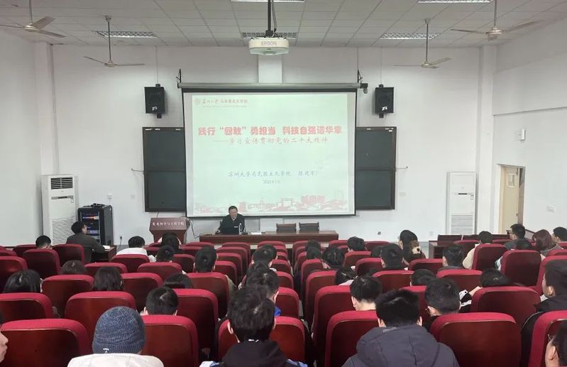 3月2日,马克思主义学院党委书记陈建军以“践行‘四敢’勇担当,科技自强谱华章”为题,带领2019级本科生全面理解与准确把握党的二十大精神实质,领悟中国式现代化进程中的教育科技人才核心地位,并强调新时代青年学生要强化理论武装、坚定理想信念,坚持求真务实、弘扬科学精神,胸怀国之大者、彰显青年担当,争做堪当民族复兴重任的时代新人。