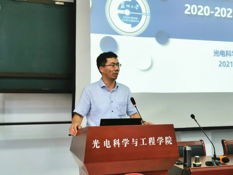 2021年9月22日下午,光电科学与工程学院在现代光学技术研究所三楼阶梯教室召开全体教职工大会,学院全体教职工参加会议。会议由院长李孝峰主持。