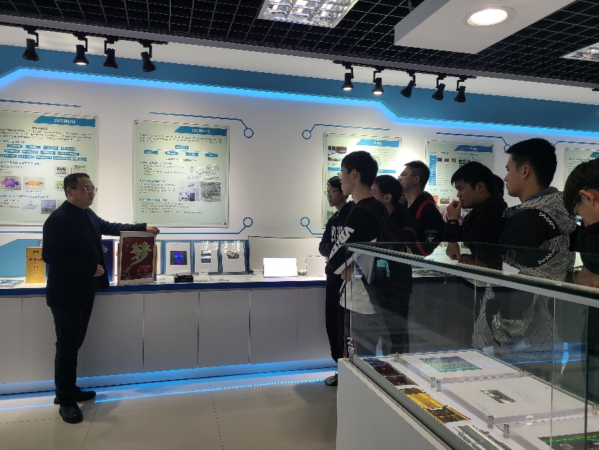 开班仪式结束之后,苏大维格集团总裁办主任赵云龙带领我院学生参观了公司的展厅,并系统介绍了公司与光电学院的历史渊源、创新产品及核心技术,为处于人生重要十字路口的毕业生们提供方向。