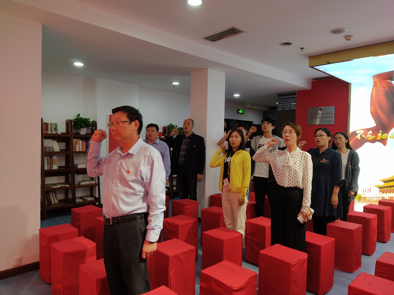 下午2点,学院党政领导、党委委员、支部书记一行来到苏州大学党员英烈生平事迹展览馆开展现场学习教育。首先,大家一同观看了《初心不改、浩气长存》专题教育片,该片通过珍贵的影像资料生动再现了以丁香为代表的苏州大学党员英烈舍生取义、壮烈牺牲的感人故事。随后,在学院党委书记陈建军的带领下,大家面对党旗,庄严宣誓,重温入党誓词。