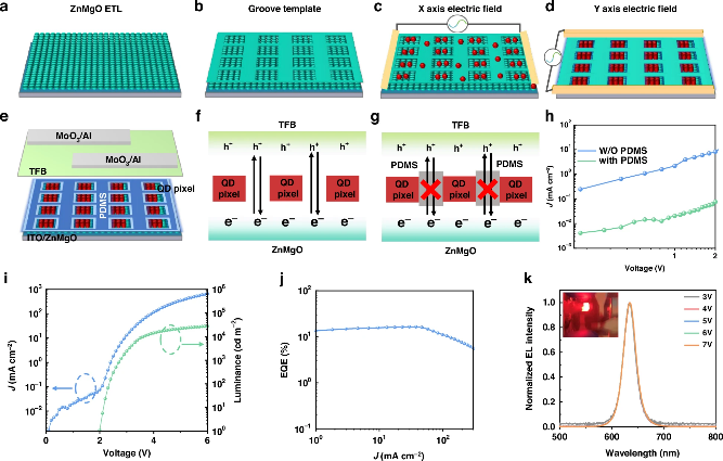 题目:Ultrahigh-resolution, high-fidelity quantum dot pixels patterned by dielectric electrophoretic deposition