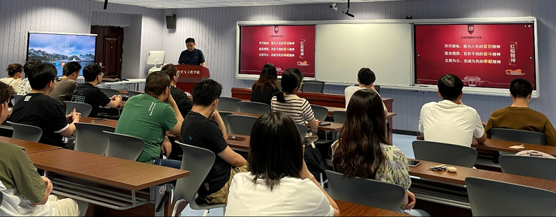 黄冠平以“历史的选择”为开篇、以“大党和小船”为主线,生动讲解了“红船精神”的起源,并详细阐释了“红船精神”的内涵,即开天辟地、敢为人先的首创精神;坚定理想、百折不挠的奋斗精神;立党为公、忠诚为民的奉献精神。黄冠平强调,百年前“红船精神”指引青年坚定信仰,百年后“红船精神”激励青年不懈奋斗,“红船精神”永不过时,红色基因代代传承、生生不息,希望同学们争做首创者、奋斗者、奉献者,树立大局意识、团队意识,知行合一,坚持不懈用习近平新时代中国特色社会主义思想凝心铸魂,学以致用,真正把主题教育成效转化为踔厉奋发、勇毅前行的强大动力。