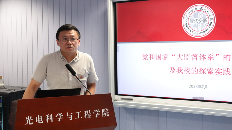 纪委审查调查处处长卢永嘉以《党和国家“大监督体系”的部署要求及我校的探索实践》为题,为全体党员上了一堂生动的微党课。他从以党内监督为主导、深化纪检监察体制改革和监督力量整合三个方面全面梳理了党的十八大以来党和国家在坚持完善监督体系方面的成果,介绍了党的二十大对完善监督体系的相关部署以及我校在构建“大监督体系”方面的实际探索和努力方向。