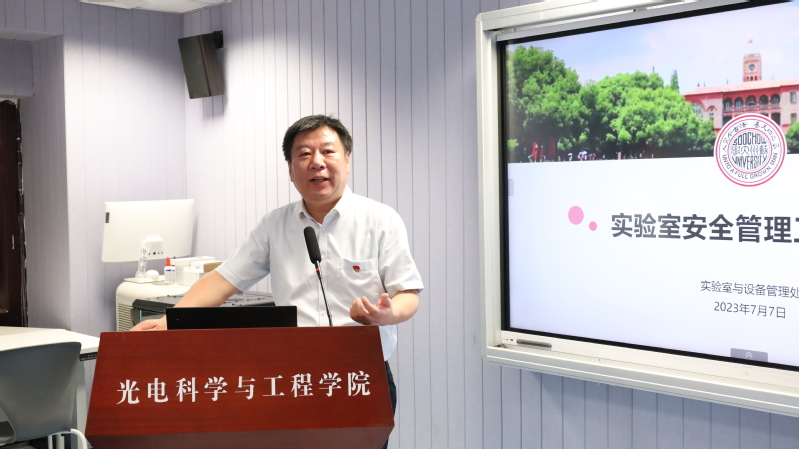 为深入学习贯彻习近平新时代中国特色社会主义思想,持续树牢安全红线意识,推动落实安全生产责任,2023年7月7日下午,纪检监察党支部、实验室与设备管理处党支部和我院“追光”学生第一党支部、第三党支部联合开展实验室安全党日活动。校党委常委、纪委书记、派驻监察专员宫向阳参加本次活动,活动由纪检监察党支部书记、校纪委副书记陶培之主持。