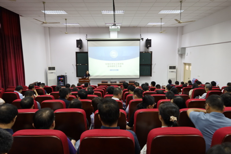 9月3日下午,光电科学与工程学院在现代光学技术研究所三楼阶梯教室召开全体教职工大会,学院全体教职工参加会议。会议由党委书记龚呈卉主持。