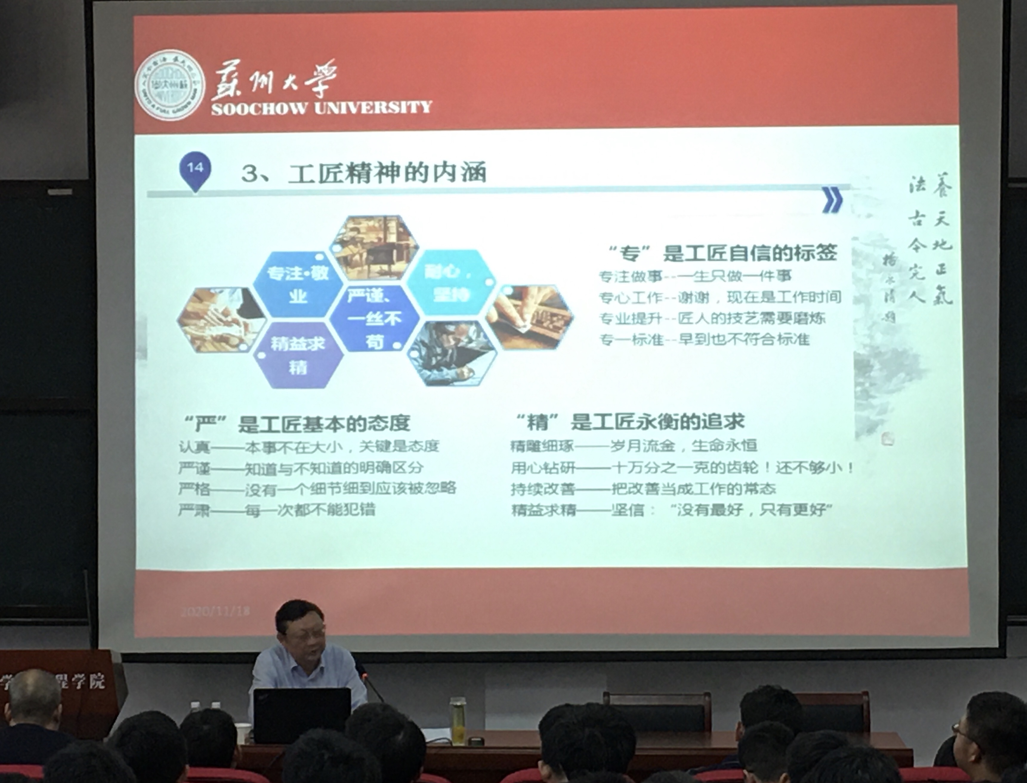 本次讲座让同学们对“工匠精神”有了更深理解,也进一步激发了同学们的求知热情,以执着专注、精益求精、创新进取的态度积极投入到今后的学习生活中,行工匠之道、筑工匠之梦!学院也将秉承工匠精神,进一步完善人才培养体系,不断提升学生综合实践能力和科研创新精神,促进学生全面发展,引导其成长为具有远大理想和抱负的卓越人才。