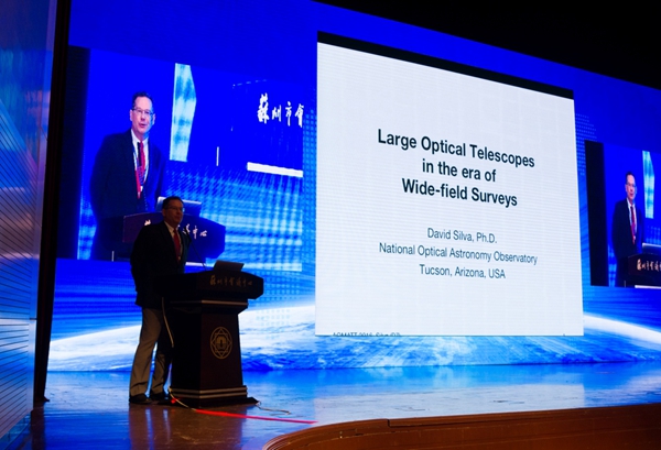 多位世界级著名光学专家作了精彩的大会演讲。来自美国哈佛大学的Eric Mazur教授带来了题为《少即多:零折射率极端光学》的报告,以基本理论为切入点,深入浅出地介绍了实现零折射率的极端光学方法,报告引人入胜,引来阵阵掌声;美国国立光学天文台台长David R.Silva博士报告题目为《进入大视场观测纪元的大型天文望远镜》,全面地介绍了当今世界上多项重大天文光学工程研究计划的发展;欧南台光机总体项目主任Marc Cayrel博士的《欧洲南方天文台极大型天文望远镜—革命在进行中》报告对E-ELT的最新进展进行了全面、深入的介绍;数码激光成像显示国家地方联合工程研究中心主任、中国光学学会全息与光信息处理专委会主任陈林森教授带来了《微纳光学与柔性电子功能器件:现状与展望》的报告,全面介绍了微纳制造在光电器件应用上的最新成果与贡献,引起大会的强烈反响;来自新南威尔士大学的章亮炽教授、不来梅大学的Oltmann Riemer博士、中科院光电所罗先刚博士以及德国联邦物理技术研究院的Ralf D. Geckeler博士等纷纷作了精彩报告。