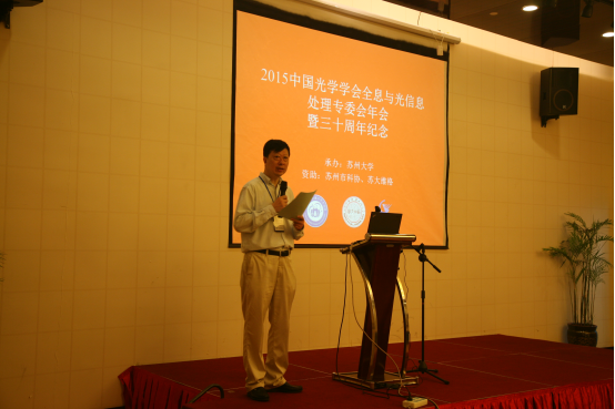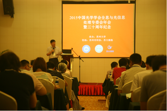 7月26日—28日,由苏州大学光电信息科学与工程学院、中国光学学会全息与光信息处理专业委员会共同主办的2015中国光学学会全息与光信息处理专委会年会暨30周年纪念在苏州书香世家酒店召开。来自全国各高校、研究所和企业等近150名参会代表与会。同时会议还受到苏州科学技术协会及苏大维格企业的资助。