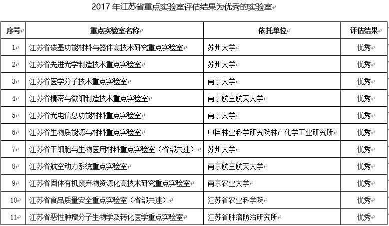 近日,江苏省科学技术厅正式公布了2017年江苏省重点实验室评估结果。江苏省先进光学制造技术重点实验室(以下简称“实验室”)在本次省重点实验室评估中被评为优秀等次,排名第二(详见附表)。