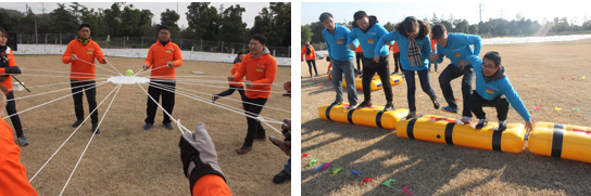 活动开始,党员们组建了红队和蓝队两个团队,红队队名“闪电队”,蓝队队名“大闪电队”。两组还分布进行了风采展示,建立归属感。