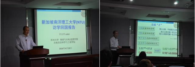 在党支部共建工作的首场报告会上,许宜申老师结合其工作中的心得体会和在新加坡南洋理工大学访学一年所感受到的学术氛围、科研环境、实验条件、文献获取等方面,尤其是教师和绝大多数学生的敬业精神和学习劲头,进行了主题为《留学归来话成才》的报告。许老师建议同学们能够自觉主动学习,将专业学习与实践动手相结合,充分利用网络资源和工具,并且注重相互交流与讨论。最后,许老师用南洋理工大学华裔馆前的“力求上进、自强不息”与同学们共勉,希望同学们为了自身的发展而努力奋斗。
