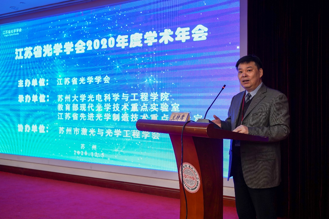 江苏省光学学会2020年度学术年会于12月5日在苏州召开。本次学术年会由江苏省光学学会主办,苏州大学光电科学与工程学院、教育部现代光学技术重点实验室、江苏省先进光学制造技术重点实验室承办,苏州市激光与光学工程学会协办。中国科学院院士、南京大学吴培亨教授,中国科学院院士、国家天文台台长常进教授,江苏省科协学会学术部部长李政、副部长徐剑,江苏省光学学会理事长、南京大学副校长王振林,苏州大学副校长张晓宏,光电科学与工程学院院长李孝峰等领导和专家出席了会议。此外,兄弟学会、安徽省光学学会副秘书长伍德侠等相关学会成员参加了会议。今年的学术年会吸引了包括江苏、北京、天津、浙江、安徽等多省市和地区的近200余位光学界同仁参加了大会。大会开幕式由江苏省光学学会副理事长王钦华主持。