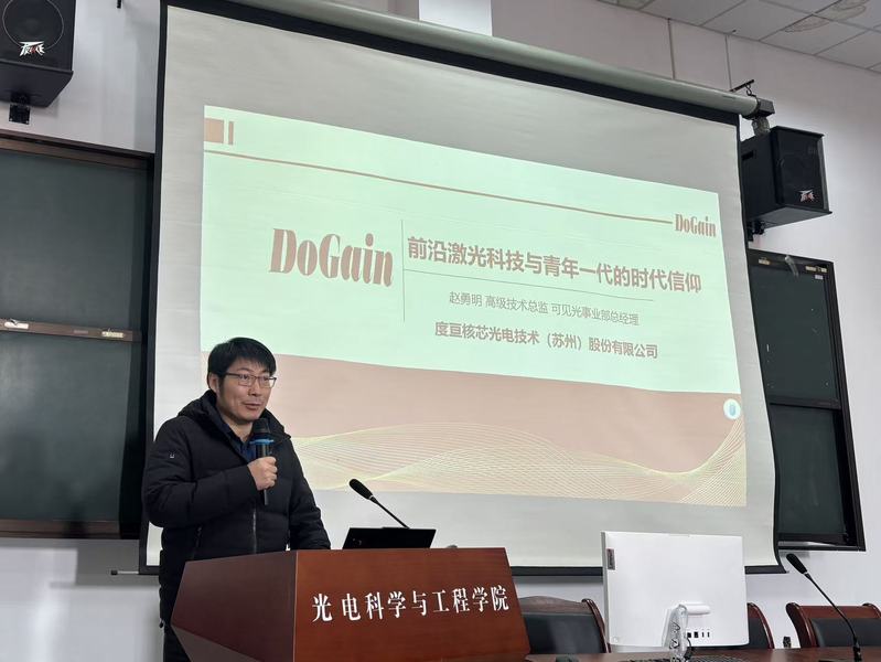 赵勇明以“前沿激光科技与青年一代的时代信仰”为题,从激光技术的发展脉络、核心应用场景及行业前沿突破入手,系统梳理了我国激光产业从跟跑、并跑到部分领域领跑的发展历程;结合度亘核芯在关键核心技术攻关中的实践案例,生动阐释了科技创新对于国家发展的战略意义,为现场学子带来了一场兼具专业深度与思想温度的专题报告。