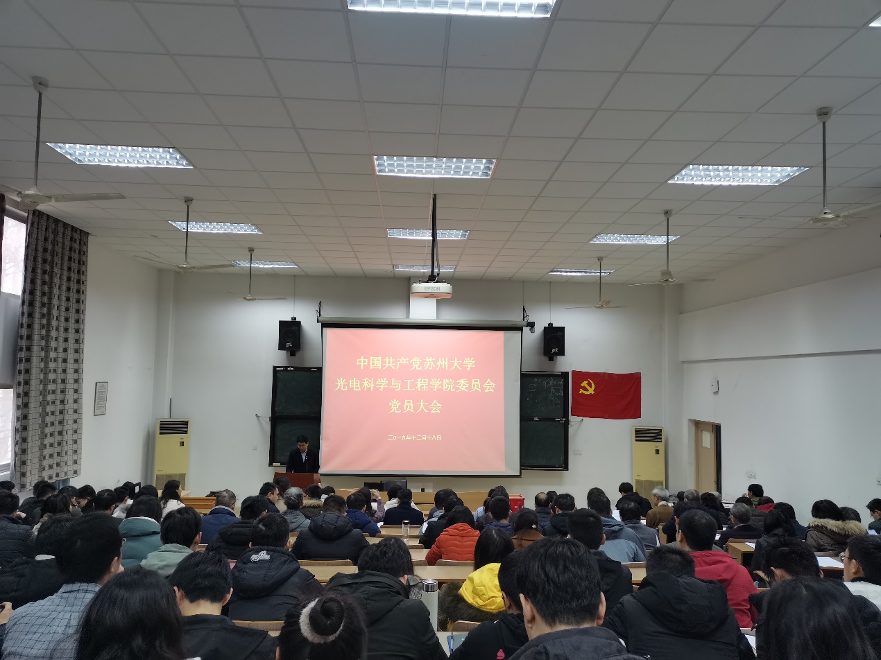 2019年12月18日下午,光电科学与工程学院党委召开换届选举党员大会。本次大会应到有表决权、选举权的党员134名,实到122名。会议由学院院长李孝峰同志主持。