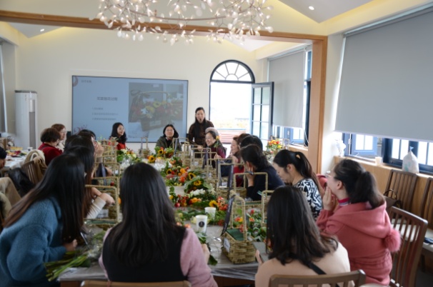 在花艺DIY活动开始后,专业教师首先介绍了花艺的基本理论,随后结合实例就插花方法进行了讲解。有益的讲授使得女教职工屏息凝听,跃跃欲试。