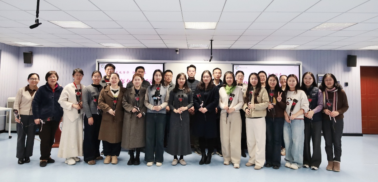 副院长(主持工作)陈煜代表学院向全体女教职工致以节日问候和美好祝福。他充分肯定了女教职工在教学、科研、管理服务等各个岗位上展现出的专业素养与奉献精神,并逐一送上鲜花,表达学院的关怀与敬意。