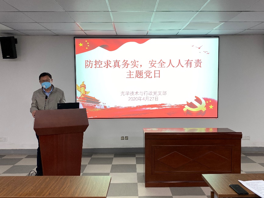 “防控求真务实、安全人人有责”——光学技术与行政党支部开展主题党日活动