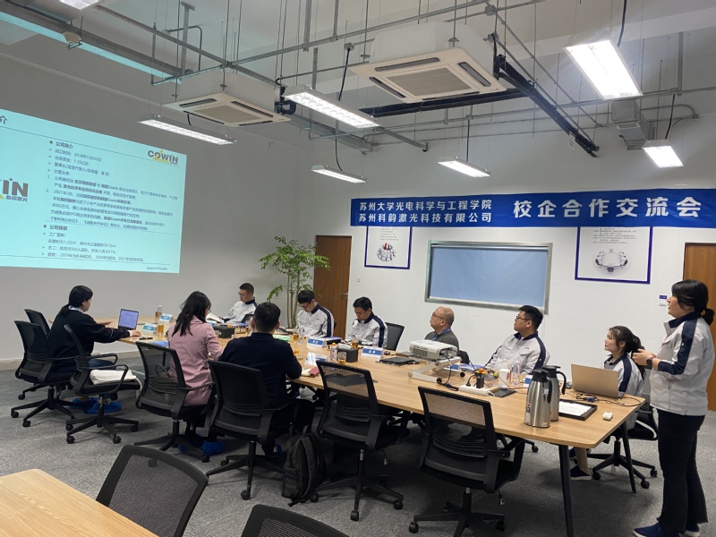 随后,双方就校企合作交流模式进行了深入的研讨。会上,科韵激光各部门分别进行公司介绍和技术介绍,表达了公司对专业人才的迫切需求,希望能进一步开展深度合作,解决企业在专业人才供给方面的难题。龚呈卉简要介绍学院的基本情况、学科优势特色,及学校在院企、校企合作方面的相关政策和渠道,表达了学院服务地方经济建设与社会发展的强烈愿望。