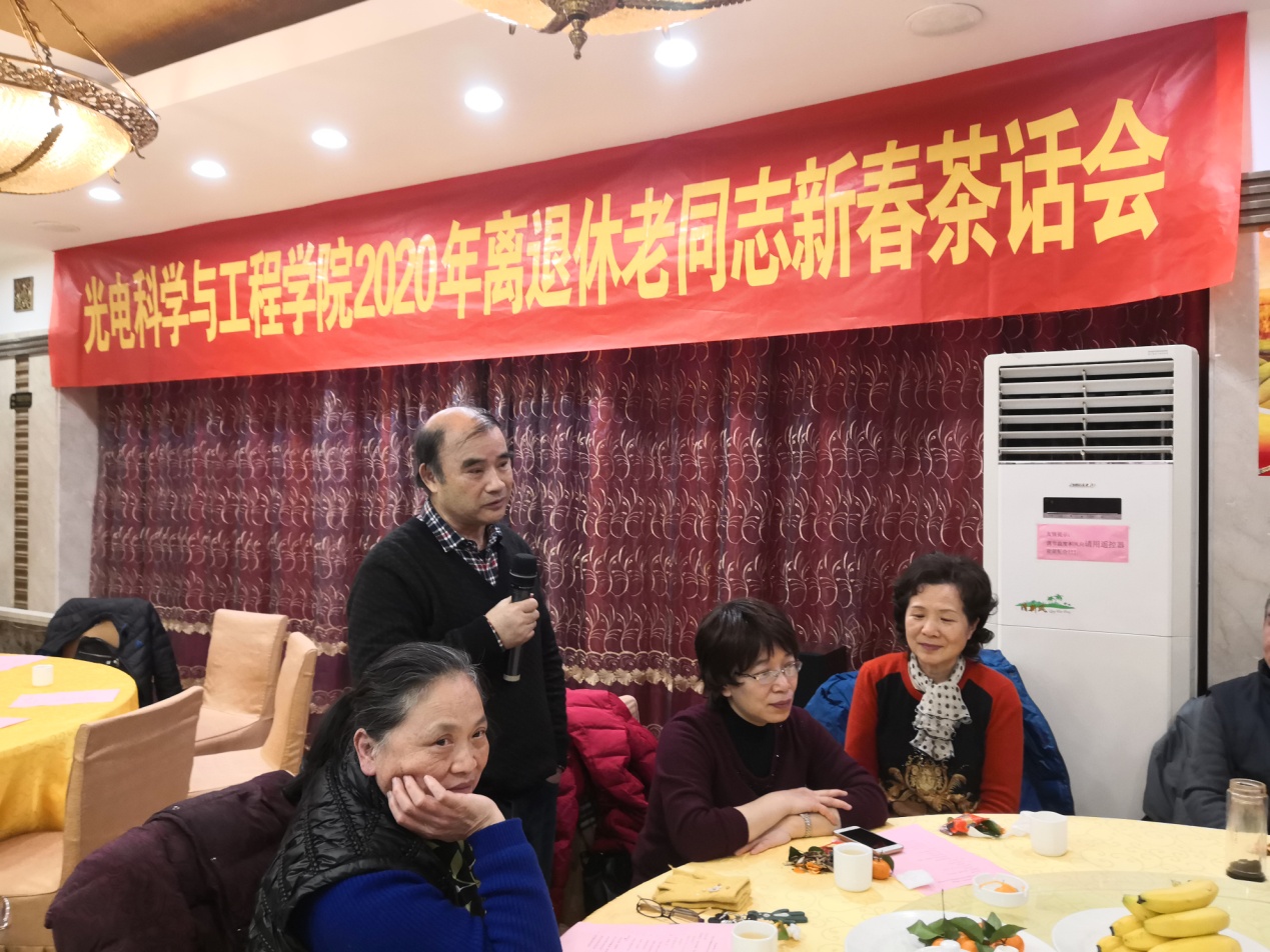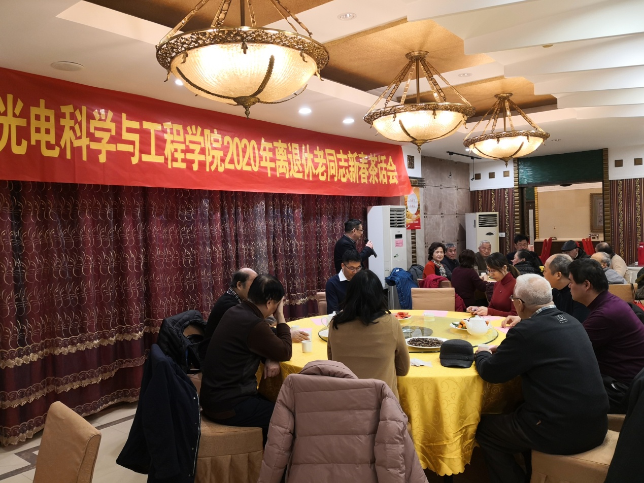 相聚暖冬,漫谈锦绣。1月15日,光电科学与工程学院在东吴饭店举行了2020年离退休老同志新春茶话会。茶话会按照中央 “八项规定”及其《实施细则》精神,坚持“气氛热烈、简朴务实”的指导思想,旨在感谢学院老同志对学院各项工作的关心和支持,共迎苏州大学120周年校庆。