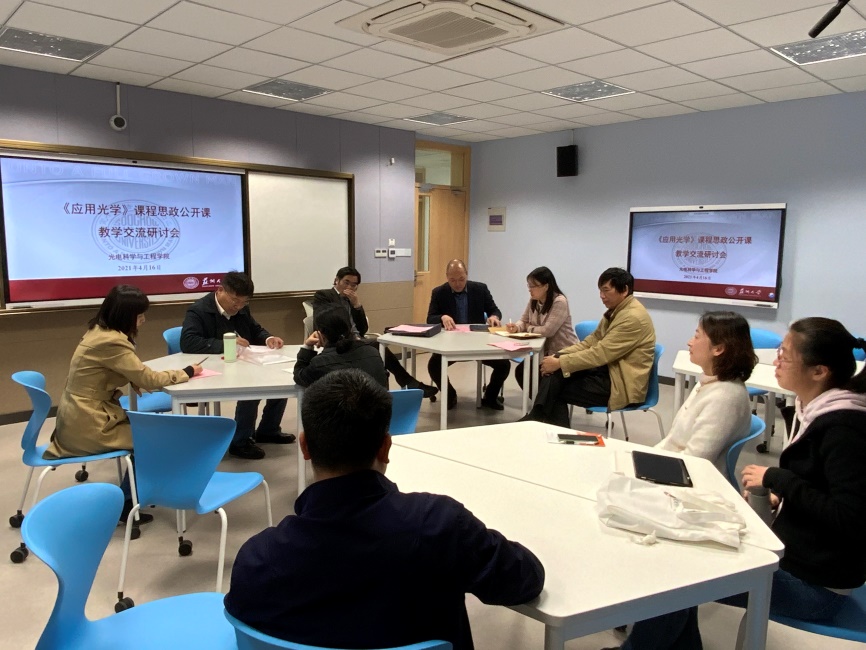 为深入贯彻落实习近平总书记关于教育的重要论述和全国教育大会及教育部《高等学校课程思政建设指导纲要》精神,将思政贯穿于人才培养与教育教学全过程,充分发挥课堂教学育人主渠道作用,2021年4月16日下午2:30,我院在博远楼301开展了《应用光学》课程思政公开课。院党委书记龚呈卉、副院长曲宏及部分专业教师参加了本次活动,校教学督导顾济华教授、院教学督导吴建宏教授、物理科学与技术学院方建兴教授与须萍教授应邀担任点评嘉宾。活动由教学副院长许宜申主持。