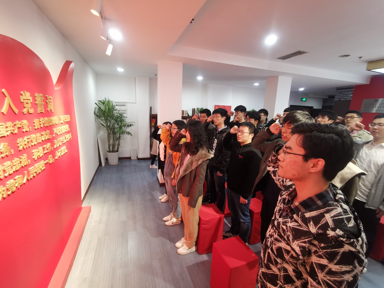 参观结束后,在党支部书记的带领下,党员们在宣誓墙前重温入党誓词,对着党旗庄严宣誓。大家举起右手,朗读着入党誓词的每一个字,用坚毅的目光、洪亮的声音诠释着自己入党的初心和使命,表达着对党的无限忠诚与热爱。