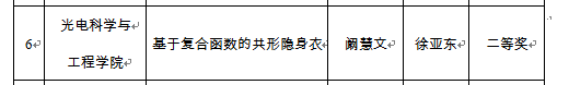 根据《省教育厅关于公布2017年普通高等学校本专科毕业设计(论文)评优结果的通知》(苏教高函[2018]30号)精神,经学校推荐,省教育厅组织专家评审、网上公示和省教育厅审核,我校2017年江苏省普通高等学校本科优秀毕业设计(论文)已产生,一等奖1项,二等奖6项,三等奖13项,团队优秀毕业设计(论文)2个,其中光电学院获二等奖1项,名单如下: