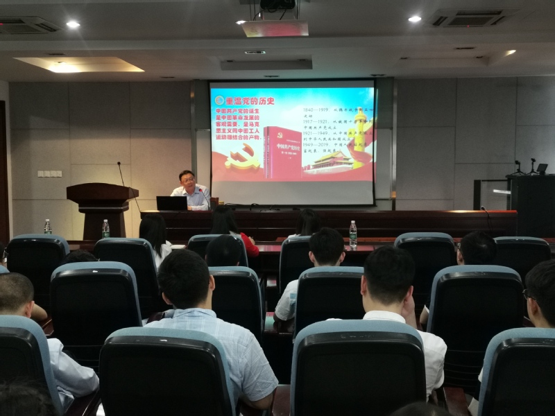 陈建军书记为全体党员作“不忘来时路,奋进新时代”主题党课,围绕“重温党的历史”、“牢记党的宗旨”、“践行党的使命”和“实现青春梦想”四个部分进行展开。他以图说史,将党史知识与我国国情、时代发展结合起来,带领各位党员们共同回顾了中国共产党的关键时间节点、重大历史事件和重要历史成果。他指出,新时代每个党员都应当牢记党的宗旨,全心全意为人民服务,践行党的使命,踏实做好本职工作,共同为建设国家富强人民幸福的创新型国家作出贡献。最后,他借用习近平总书记的“青年兴则国家兴,青年强则国家强。青年一代有理想、有本领、有担当,国家就有前途,民族就有希望”来激励每一位党员,科技创新是每个人都应当承担的责任,希望每一位学生党员都能不忘初心,勇于担当,在科技创新、民族复兴的道路上砥砺前进、越走越远。